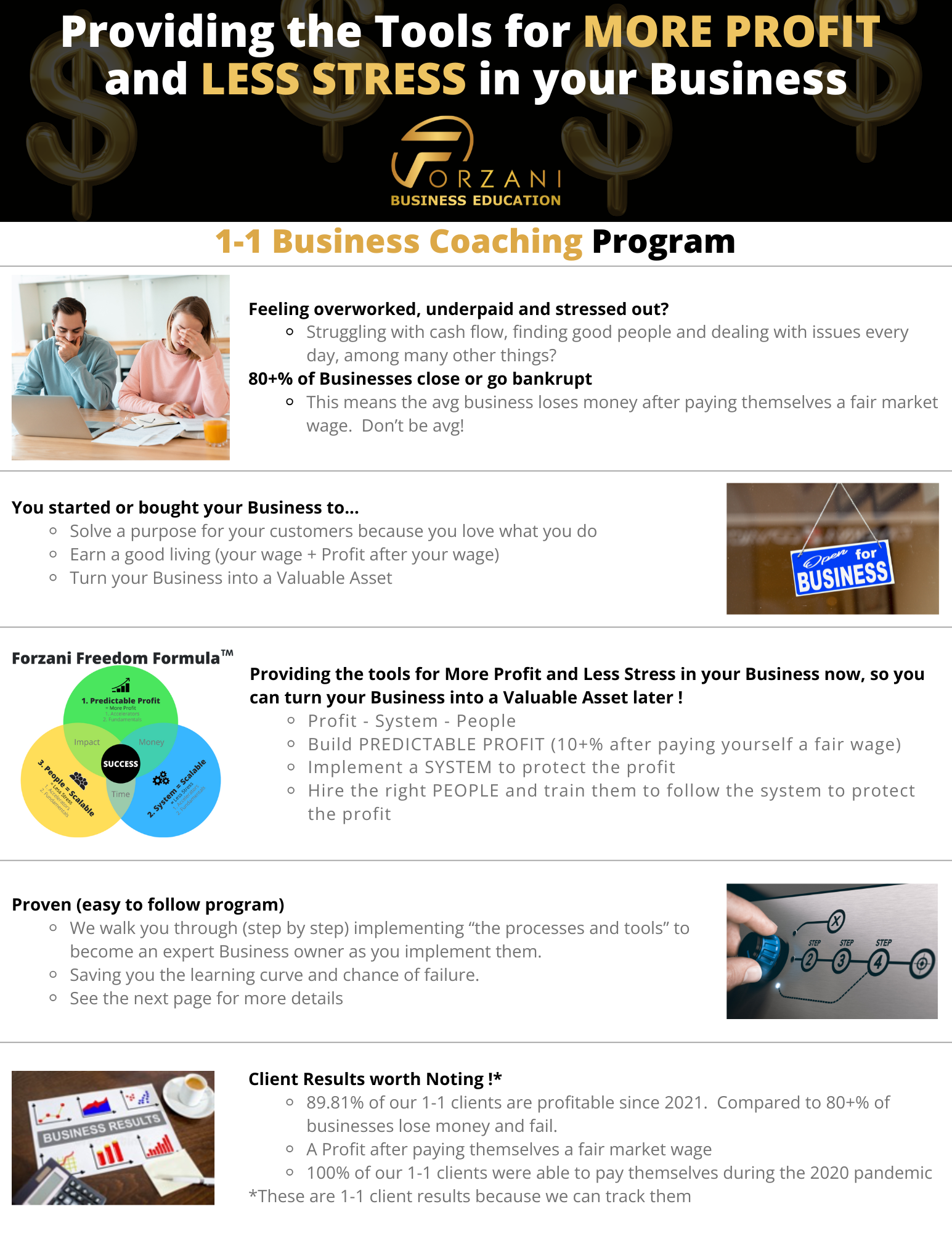 Providing the tools for More Profit and Less Stress in your business, turning it into a Valuable Asset!
