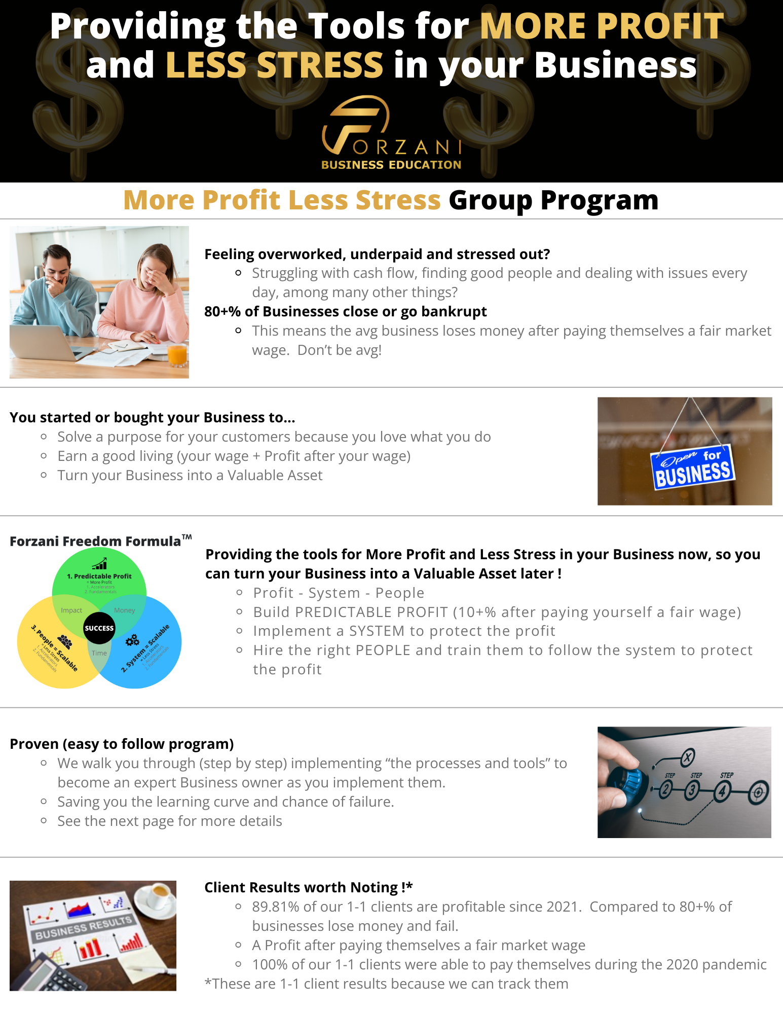 Here's some of what you get with the More Profit Less Stress Program: